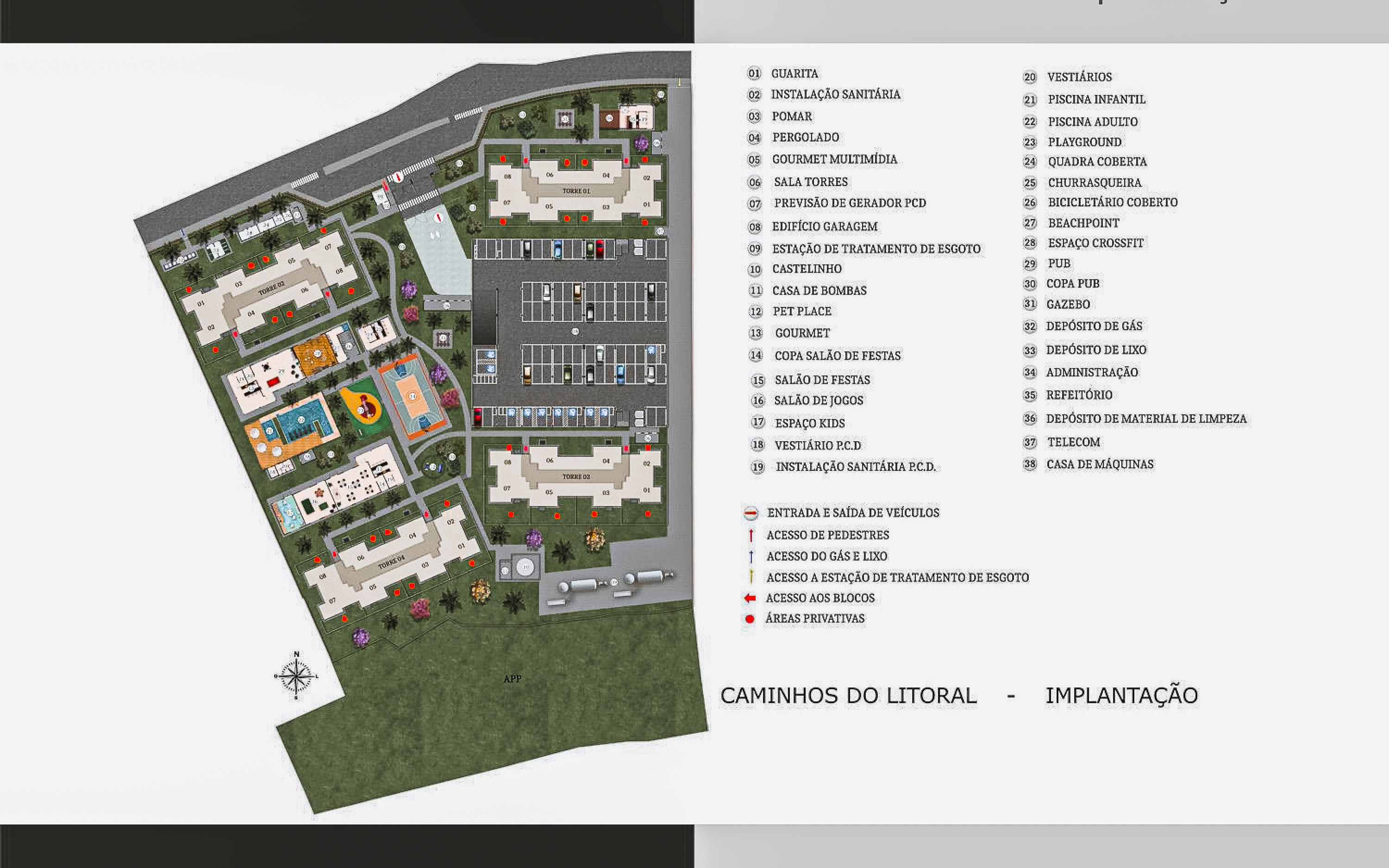 - Área de lazer: Salão de Festas, Playground, Pet Place, Salão de Jogos, Churrasqueira, Espaço Gourmet, Piscinas Adulto e Infantil, Espaço Kids, Gazebo, Bicicletário.